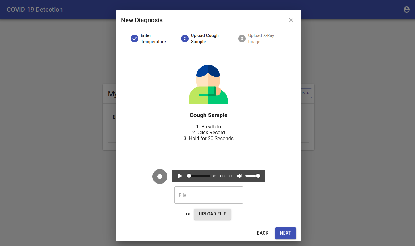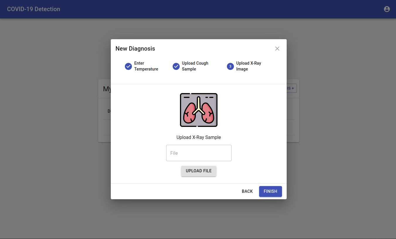 The COVID-19 Detection App was developed to determine the likelihood of COVID through X-Ray, Cough and Temperature analysis. I researched and taught myself the development and implementation of x-ray analysis from similar existing machine learning implementations. I then implemented the project for x-rays with data gathered from online resources, resulting in a model for analysis. Cough analysis was developed by analysing the wavelength of an audio file and determining large peaks as coughs. This component was modelled after early assumptions identified not being able to hold your breath for 20 seconds being a COVID positive factor. Finally, temperature was input by the user and a value over 35 would increase your positive outcome.